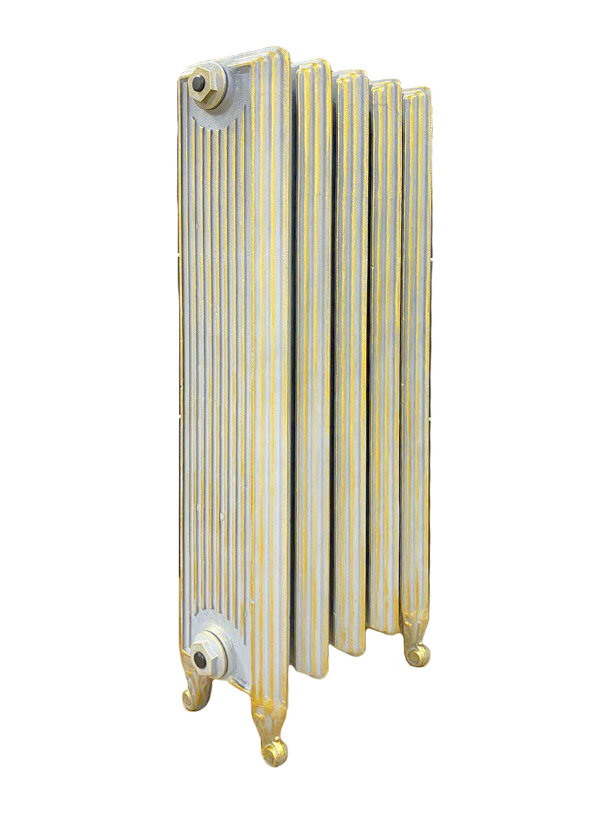 Черты эллинской культуры угадываются в чистоте линий, совершенстве пропорций и изящной лаконичности декора этого чугунного радиатора. Его монументальность напоминает величественные колонны и портики древнегреческих храмов. Безукоризненность классики пронизывает все детали этого элегантного образа. Чугун придает радиатору прочность, основательность, солидность и долговечность. За счет хорошей тепловой инерции металл способен дольше сохранять тепло.  Для интерьерных вариантов в классическом стиле этот оригинальный радиатор станет безупречно гармонирующим с обстановкой предметом.