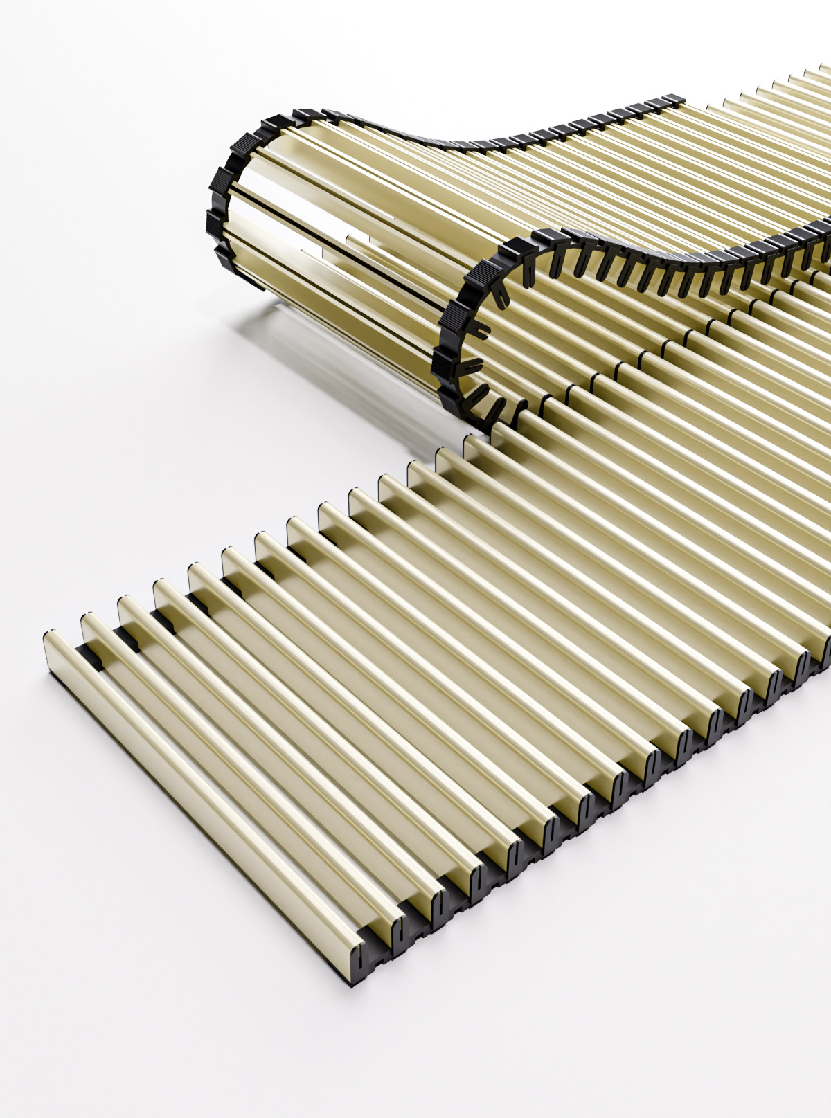 Особого внимания заслуживает система замены отдельных прутков. Повреждение одного элемента не означает, что придется менять всю решетку. Каждый пруток имеет округленный верхний край — это важно не только для безопасности босых ног, но и для равномерного распределения нагрузки. На производстве позаботились и о точках отреза. Пластиковый соединитель со встроенным покрытием срезов маскирует места подгонки, делая их визуально незаметными. Края не темнеют, не окисляются и не травмируют руки при уборке. Это уровень детализации, который отличает профессиональный климат-аксессуар от кустарного изделия.