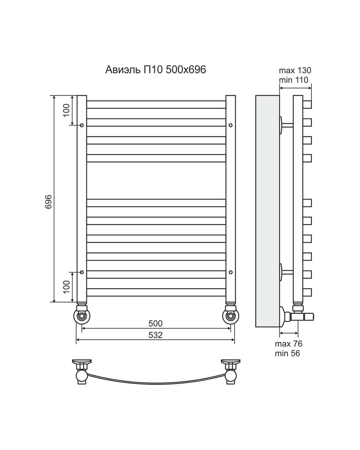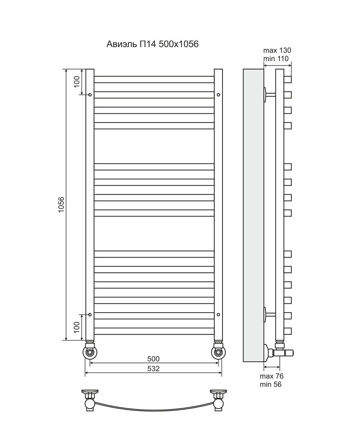 Авиэль - водяной полотенцесушитель с нижним подключением, цвет бронза