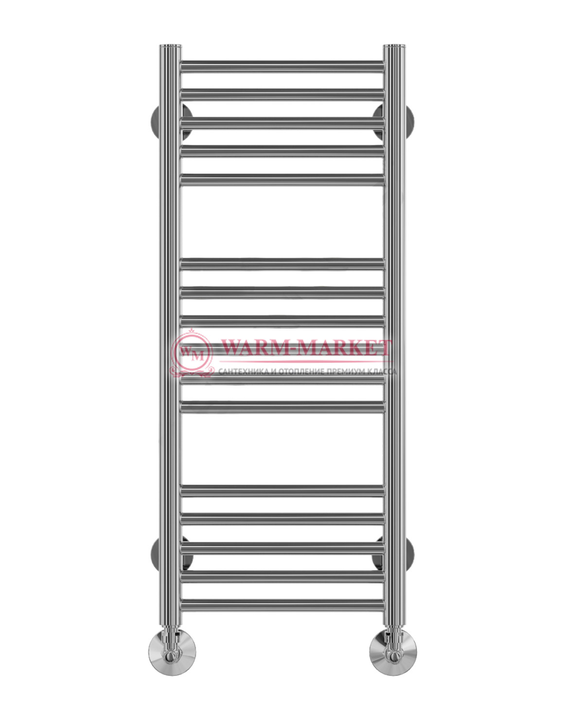 Полотенцесушитель в форме лесенки с тремя блоками перекладин. Радиатор выполнен из хромированной стали высшего качества. Утонченный и изысканный  полотенцесушитель предназначен для обогрева небольшой и средней ванной комнаты. На перекладинах удобно сушить полотенца и банные принадлежности. Материал, из которого выполнен радиатор, выдерживает значительные нагрузки, не подвержен ржавчине и коррозии, имеет длительный срок службы. Полотенцесушитель отлично вольется в интерьер в стиле хай-тек, минимализм или классический.
