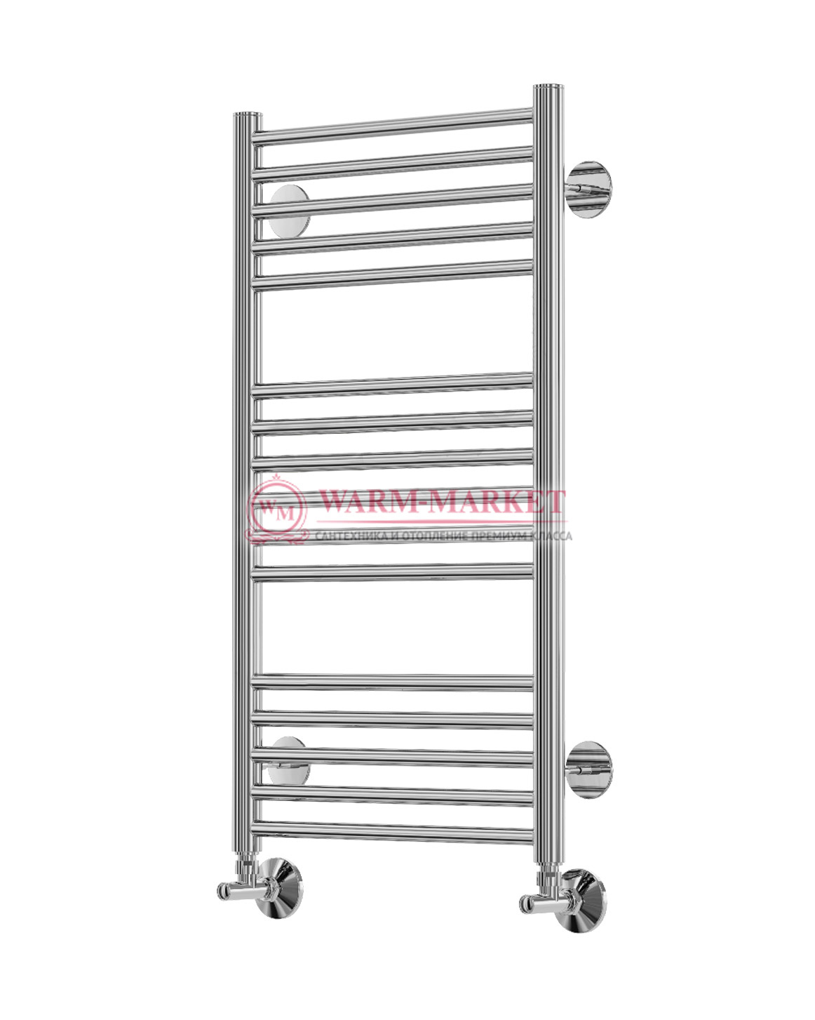 Полотенцесушитель в форме лесенки с тремя блоками перекладин. Радиатор выполнен из хромированной стали высшего качества. Утонченный и изысканный  полотенцесушитель предназначен для обогрева небольшой и средней ванной комнаты. На перекладинах удобно сушить полотенца и банные принадлежности. Материал, из которого выполнен радиатор, выдерживает значительные нагрузки, не подвержен ржавчине и коррозии, имеет длительный срок службы. Полотенцесушитель отлично вольется в интерьер в стиле хай-тек, минимализм или классический.