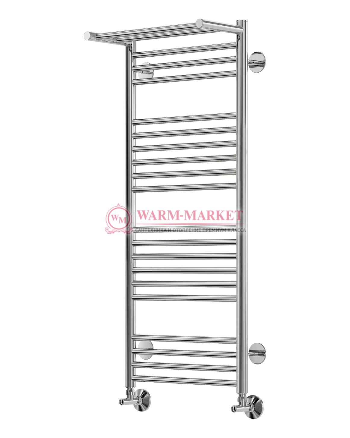 Изысканный полотенцесушитель в виде лесенки с полкой для комфортной и быстрой сушки полотенец или банных принадлежностей. Радиатор выполнен из стали высокого качества. Современный полотенцесушитель обогреет ванную комнату небольших размеров. Радиатор прекрасно вольется в интерьер в стиле минимализм, лофт, классический или хай-тек.