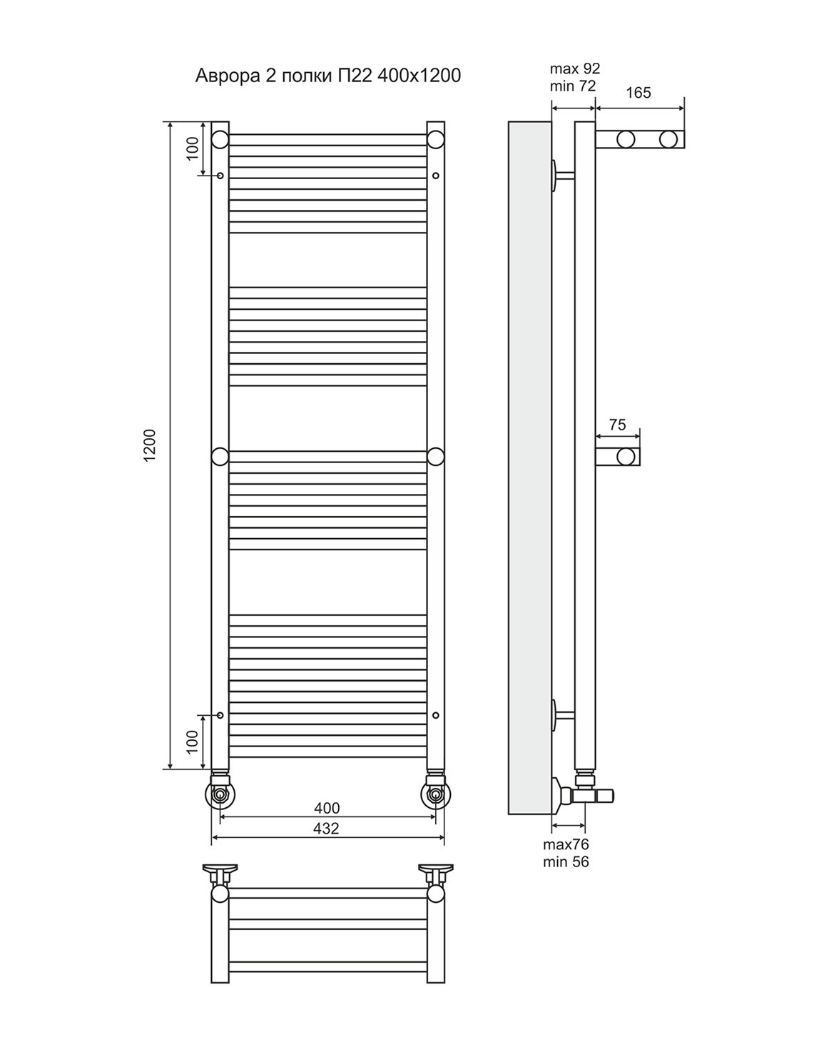 Аврора П22-2 - водяной полотенцесушитель, нижнее подключение, цвет золото