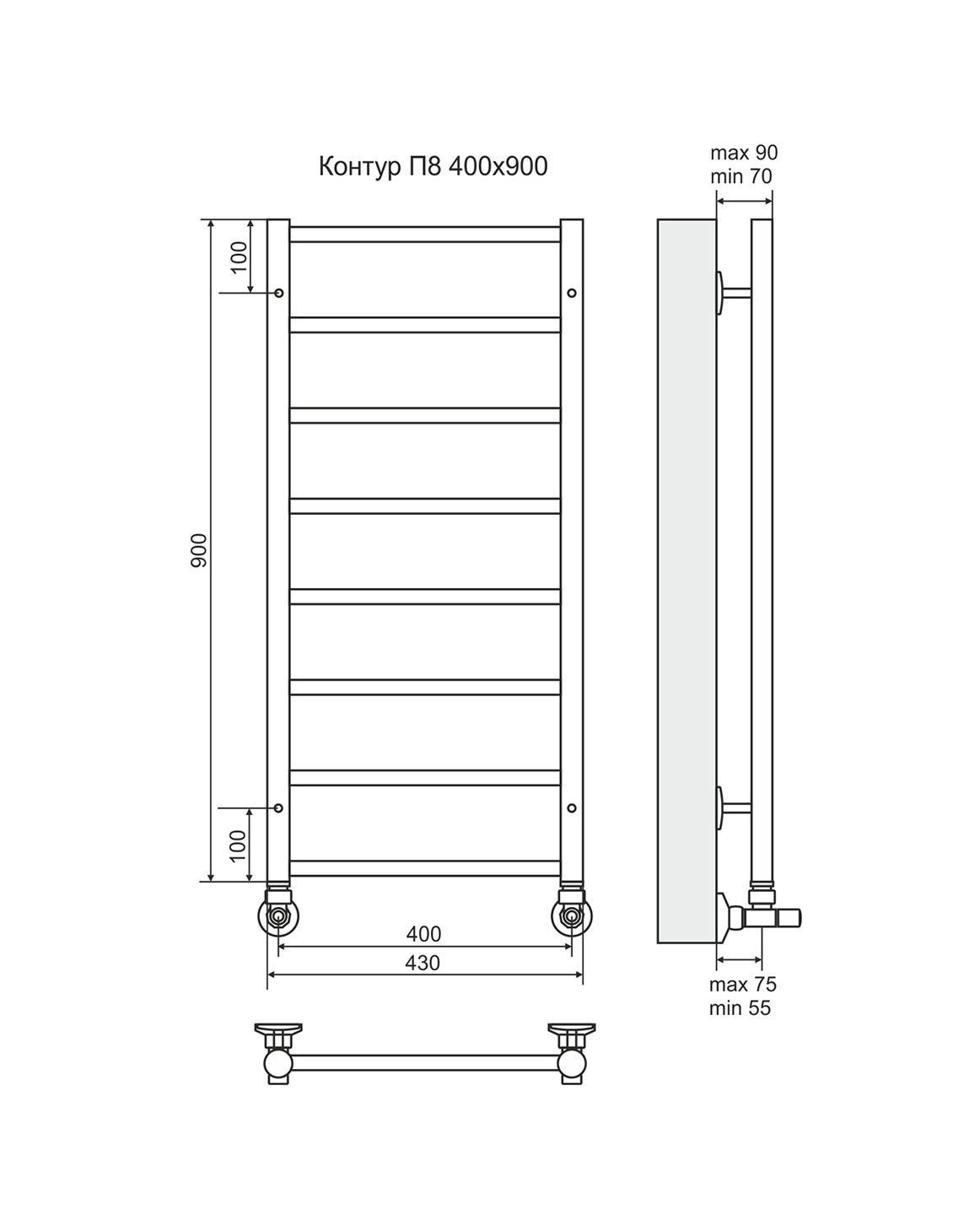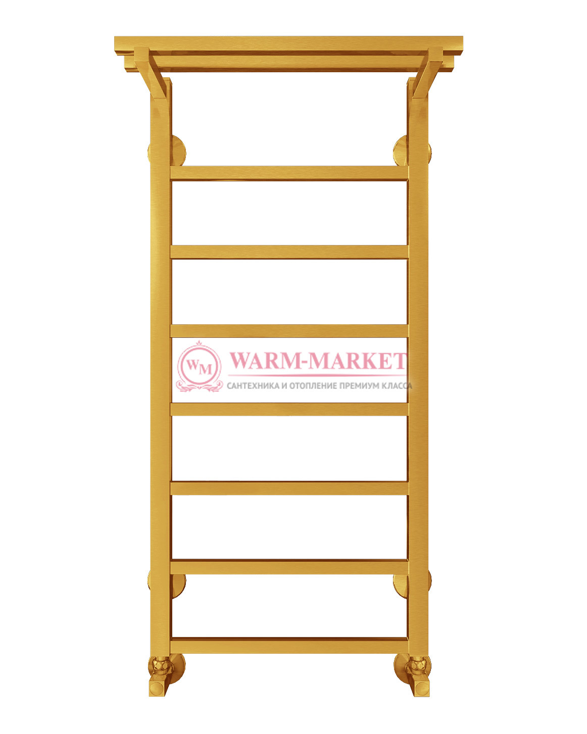 Современный полотенцесушитель золотого цвета с верхней полочкой и нижним подключением. Радиатор выполнен из нержавеющей стали высокого качества. Аутентичный полотенцесушитель предназначен для отопления небольшой ванной комнаты в современном стиле или любом другом дизайне. На полочку удобно повесить мокрое полотенце или халат, они быстро высохнут. Полотенцесушитель Контур имеет длительный срок службы, так как выполнен по уникальной технологии с применением современных материалов. Нержавеющая сталь не подвержена коррозии, в том числе электрической.