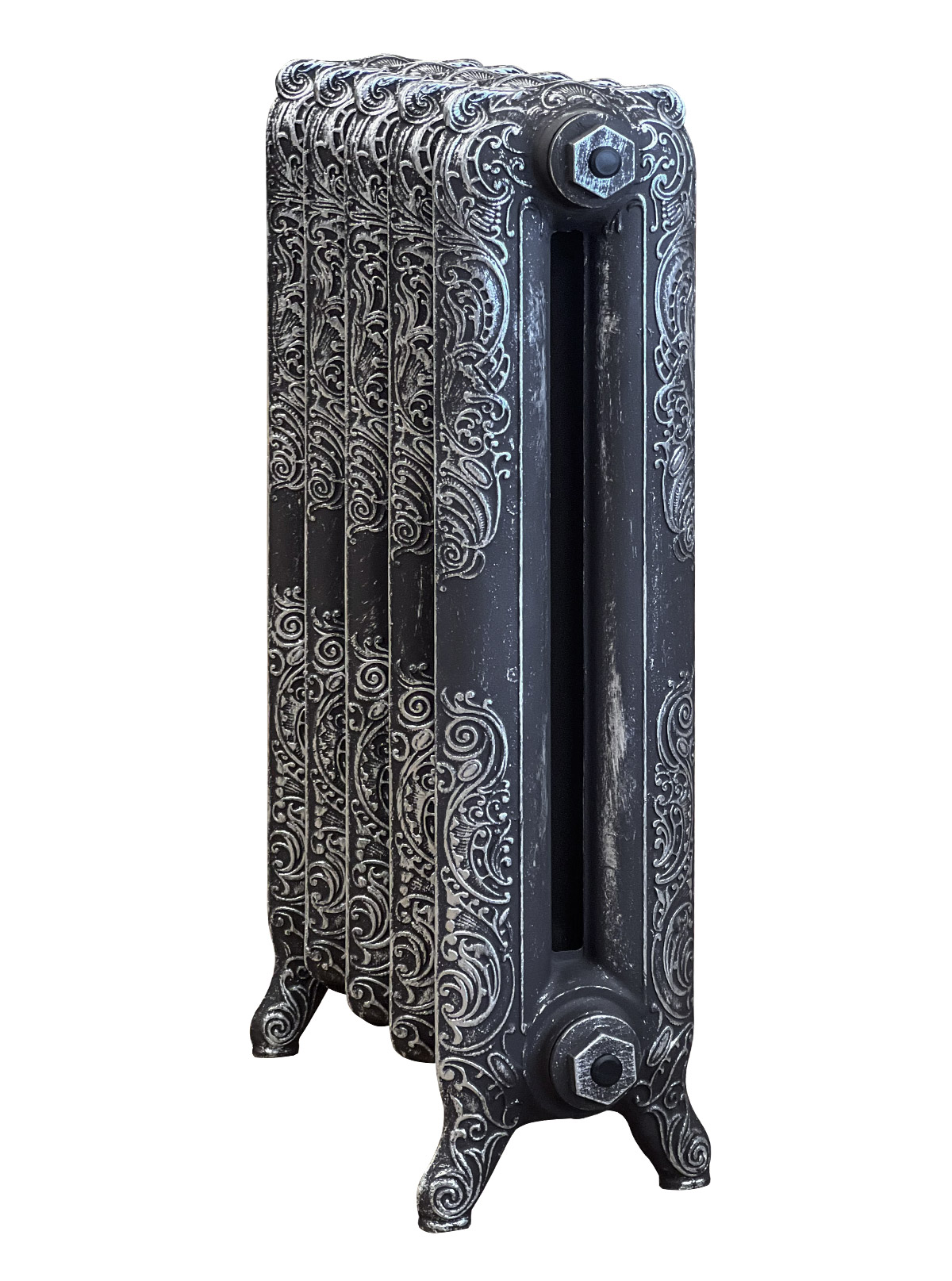 Витиеватость узоров, изысканность рельефного орнамента, изящество форм придают этому радиатору величественную пышность, достойную дворцов самих Виндзоров. В таком воплощении радиатор приобретает роскошный, эксклюзивный вид, обещающий максимальный комфорт и эстетическое наслаждение. Выбранный материал - чугун - придает радиатору высокую теплопроводность и позволяет долго не остывать, обеспечивает стойкость к разного рода воздействиям, делает его надежным и долговечным.  Подходящий вариант для реализации отопления в интерьере, где основным является ретро стиль.