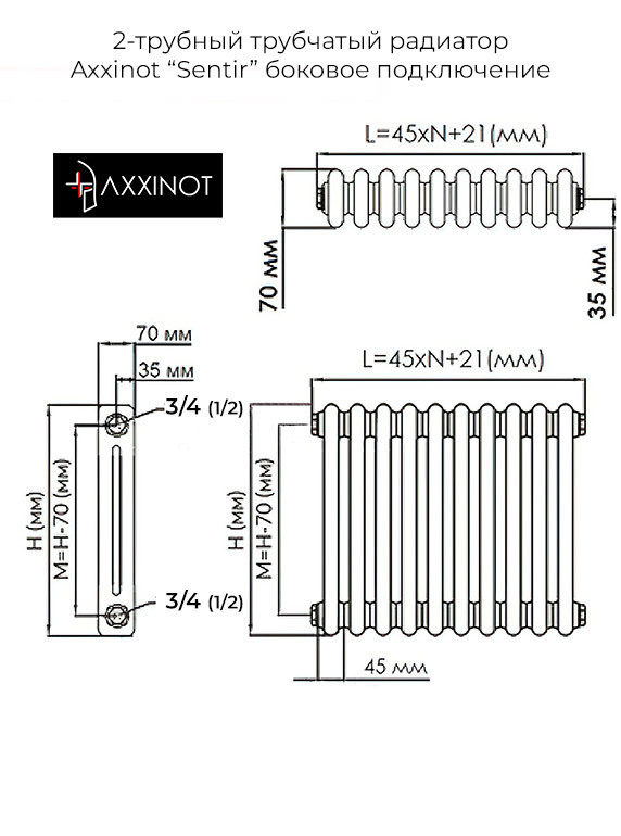 Axxinot Sentir 2160 - стальной трубчатый радиатор, боковое подключение N12