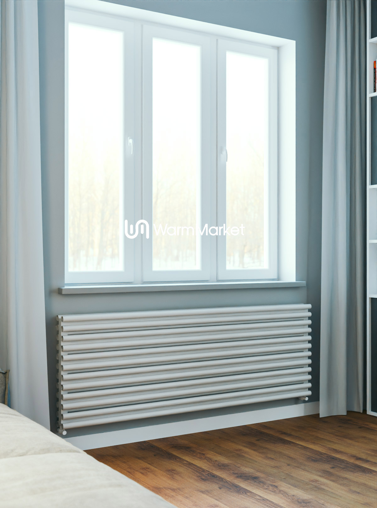 Модель оснащена нижним разнесённым подключением, что позволяет скрыть коммуникации и сохранить аккуратный внешний вид интерьера. Это решение удобно при монтаже и помогает интегрировать радиатор в современные дизайнерские проекты. Конструкция рассчитана на установку от 2 до 12 секций, что даёт возможность подобрать оптимальную конфигурацию для любых помещений — от небольшой комнаты до просторного офиса или зала.